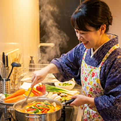 We will cook and eat together using naturally grown vegetables from Totofarm (Tokushima). You’ll experience “Kasaneni” (a traditional layered simmering technique)—a simple, deeply nourishing way to prepare food that is gentle on the body.